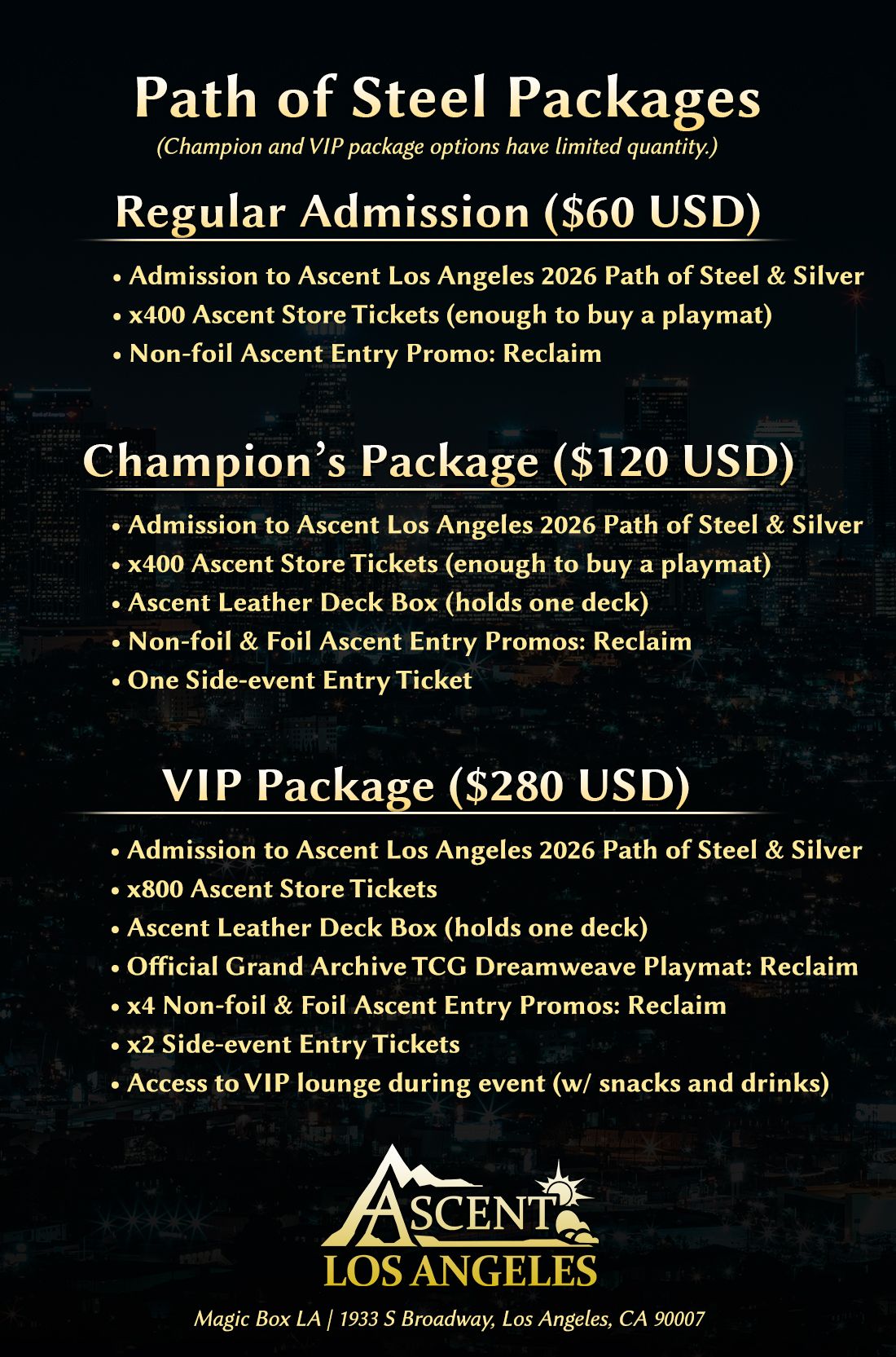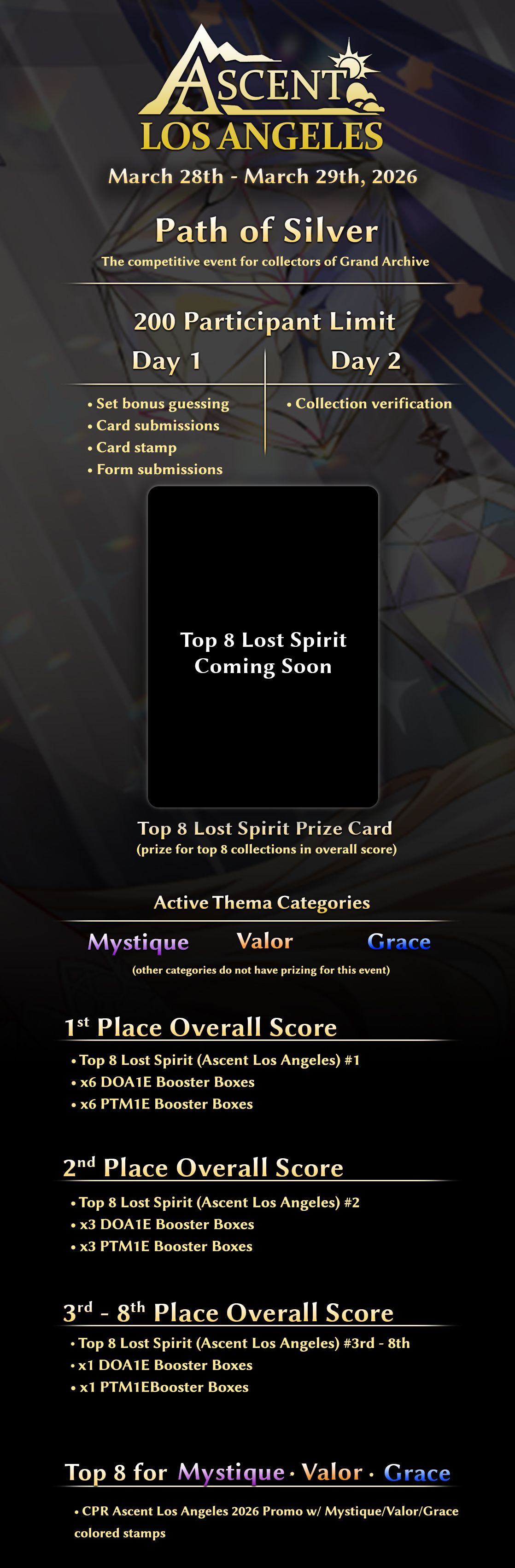 Ascent is headed to the United States for the final premier event before the 2026 Nationals Season! Join us in Los Angeles, California for an amazing weekend of Grand Archive.