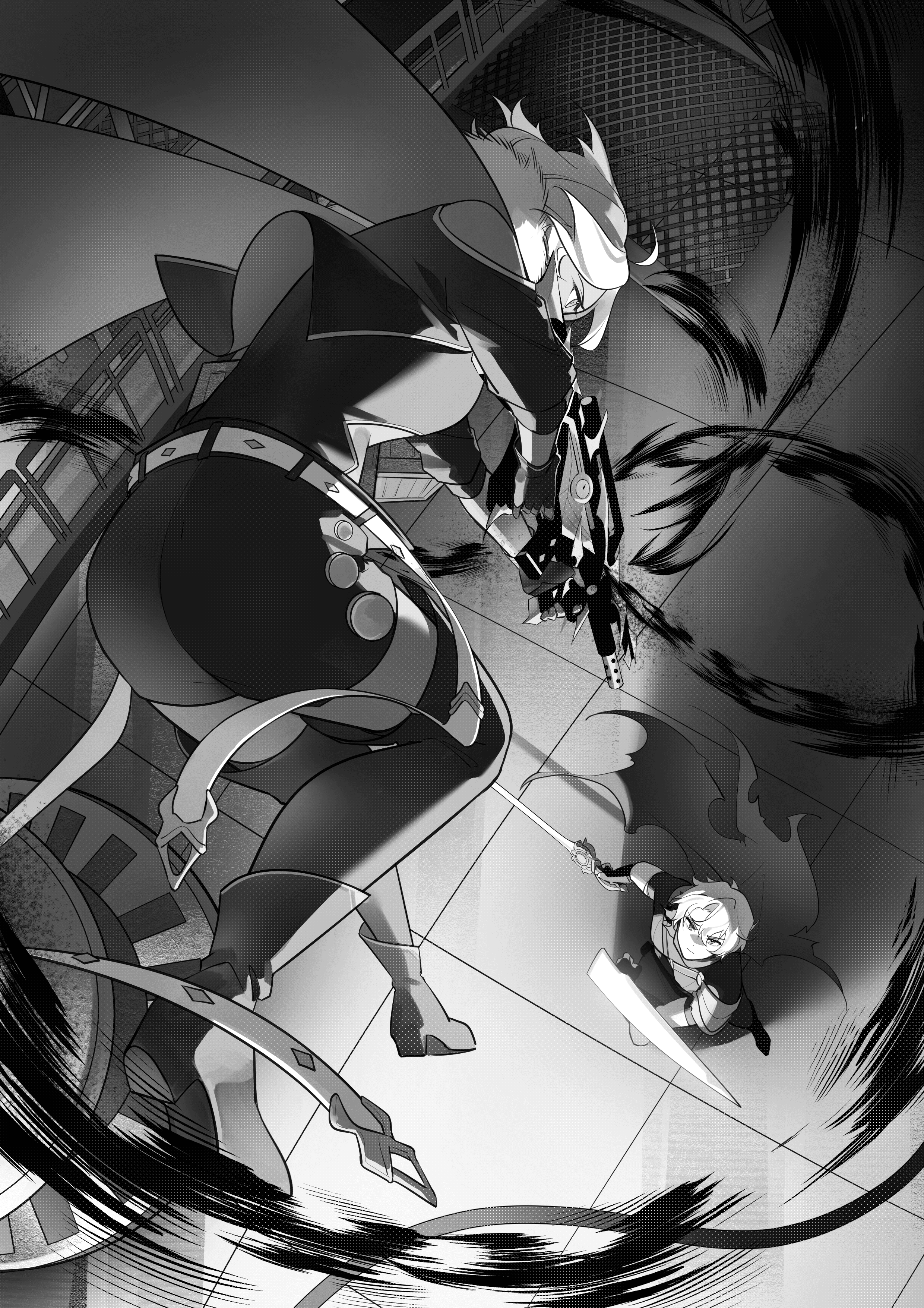 His sword cut through the whirlwind of energy to strike at the exact spot she had been standing in. Tonoris had cast aside his shield, likely realizing it would only grow to burden him the longer her cursed bullets worked their dark rot through his arm. It meant that there was little in between him and her rifle, but he would be much faster now. She rode the rush of adrenaline to the second story, the darkness guiding her feet through the mess of ladders and platforms, all while she heard his heavy steps rattling the structure, not far behind. She needed to end this quickly.