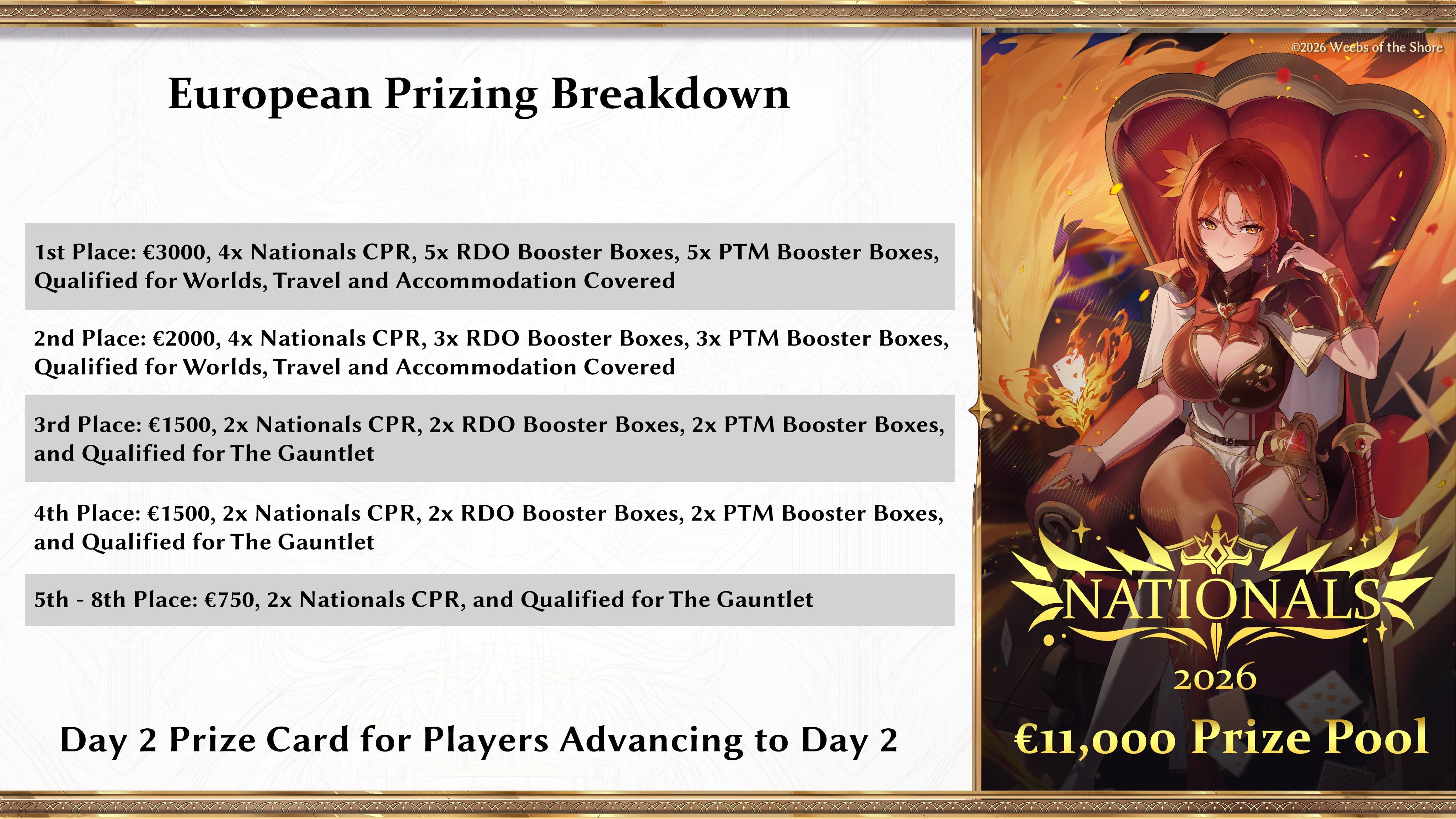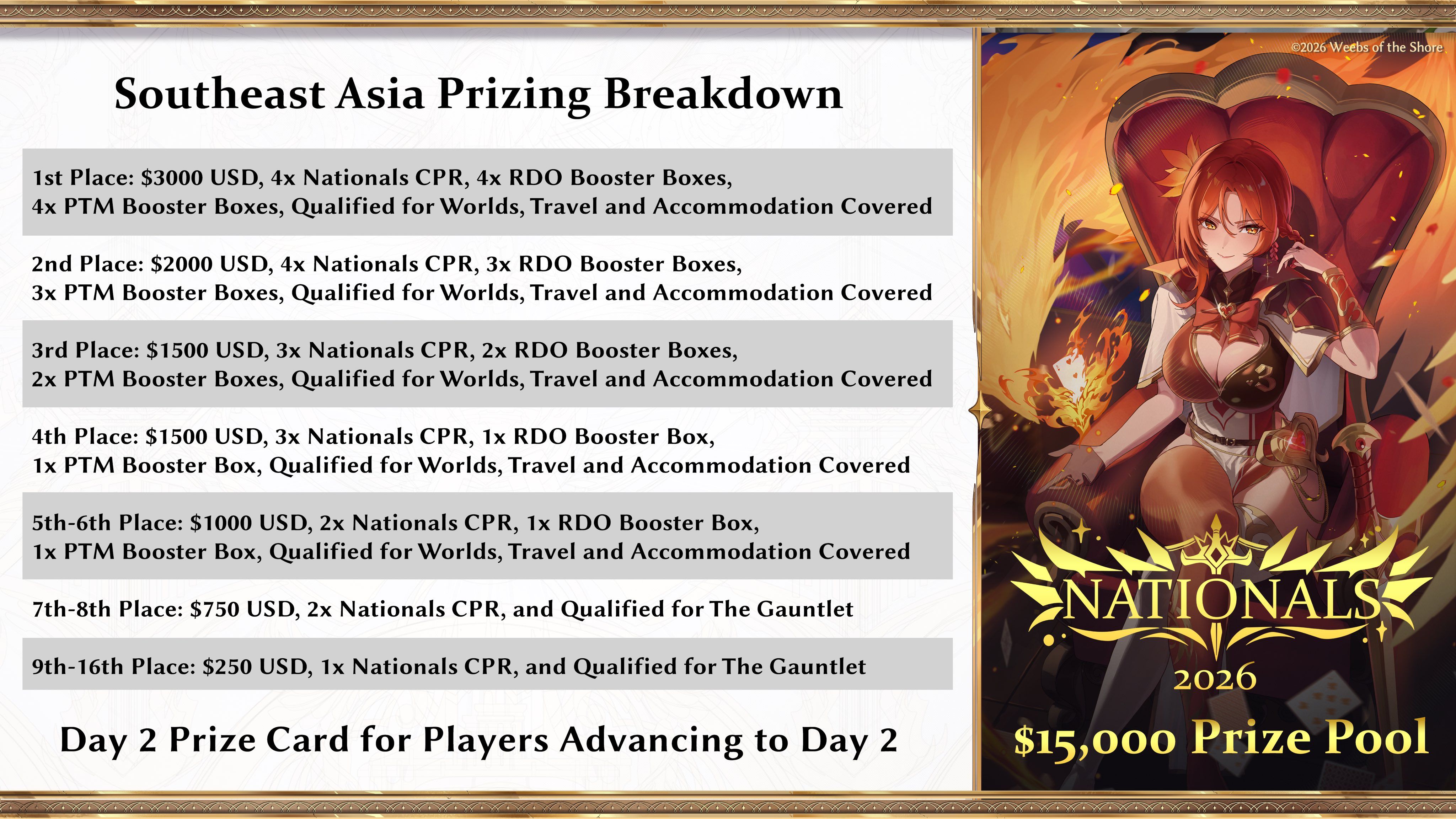 Grand Archive Nationals are invitational events that happen once a year, leading up to the World Championships. These events are highly competitive as players hash it out for a potential spot in the even more exclusive World Championships main event, boasting a robust prize pool of $68,000!