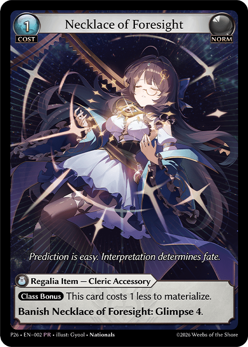 Here’s a closer look at the Necklace of Foresight and Three of Hearts cards available as prizing. As noted above, all players who qualify for day 2 will receive a Foil Necklace of Foresight Promo.
