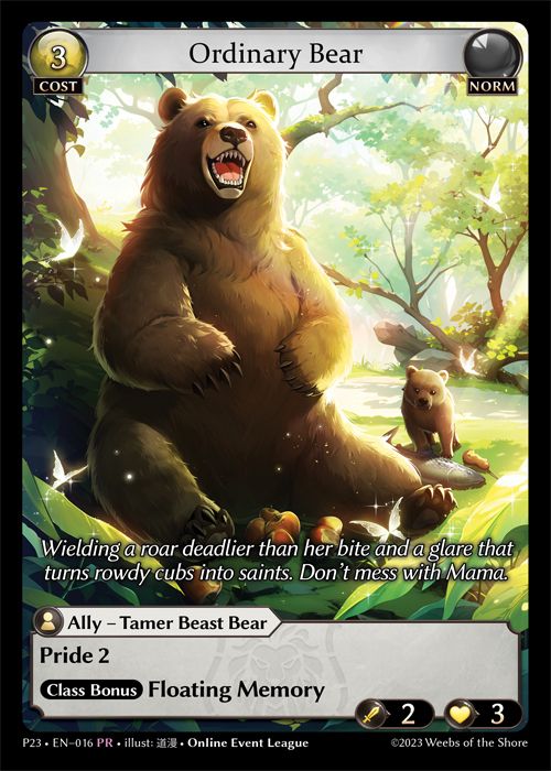 A: Starting in November 2023, league hosts will be able to give out a promo version of Ordinary Bear as additional prizing for their events. There will be a new promotional card for online event leagues on a yearly basis.