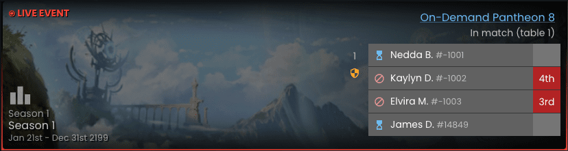 • Players may enter the queue to join a 4‑player Pantheon pod. Once matched, you’ll be assigned a table for your game.