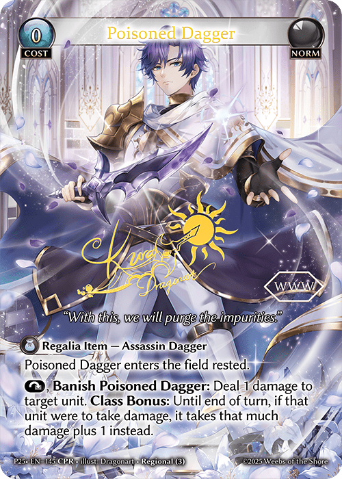 The Nationals Qualifier card for regionals this season is a new art of Poisoned Dagger, featuring Zander!